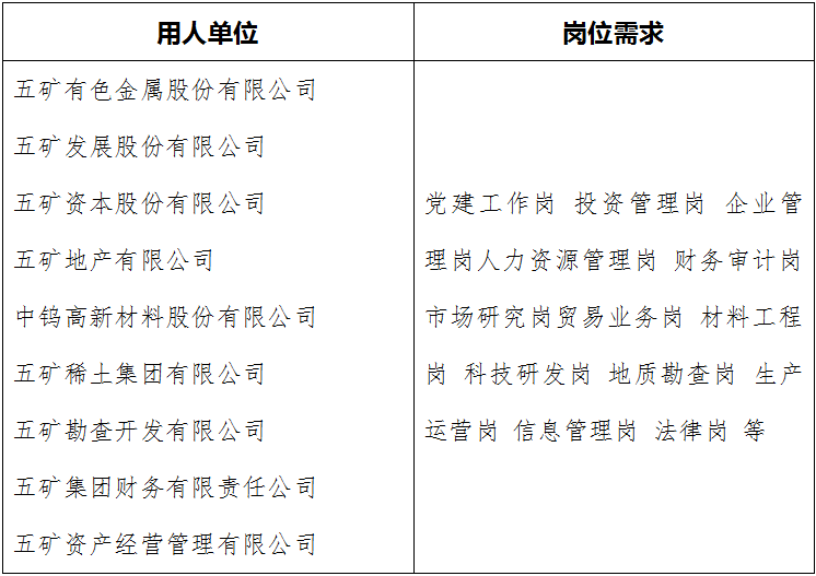 (更多职位信息见企业招聘官方网站:zhaopin.minmetals.com.cn)
