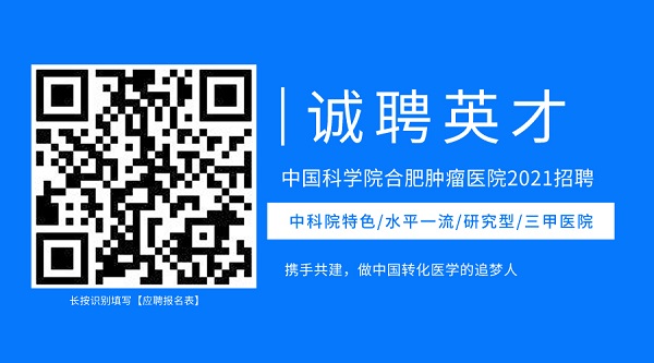 2.报名方式:扫描二维码,填写《中国科学院合肥肿瘤医院2021年应聘人员报名表》。报考人员填写的信息必须与本人实际情况、报考条件和所报考的岗位要求相一致。凡弄虚作假者,一经查实,取消考试、聘用等资格并追究责任。每位报考人员限报一个岗位,并使用本人有效居民身份证进行报名和参加考试。