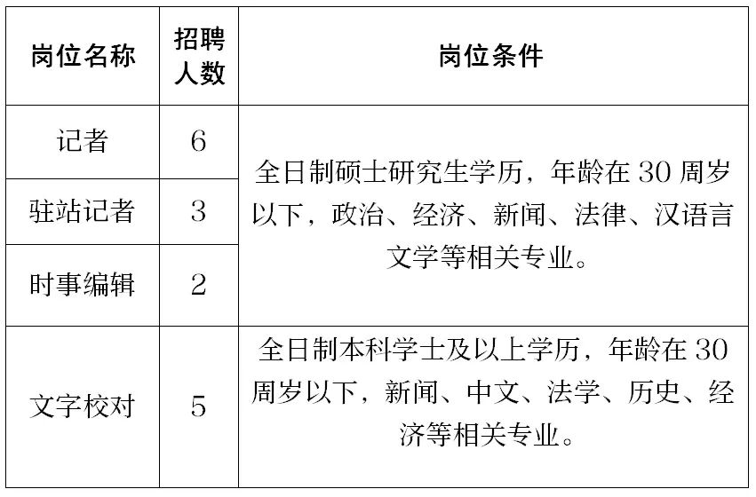 (四)时事编辑、文字校对岗位为长年夜班岗位,身体等各方面须具备夜班工作条件,男性。